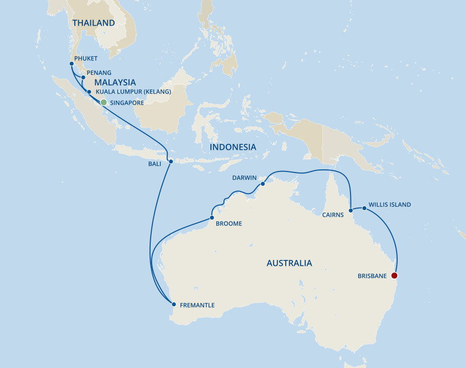 If you're heading home or continuing to explore more of Australia, Brisbane's Portside Cruise Terminal is just 7kms from the domestic and international airport. Brisbane's city centre is just 10-15 mins away if you're planning to explore the city.