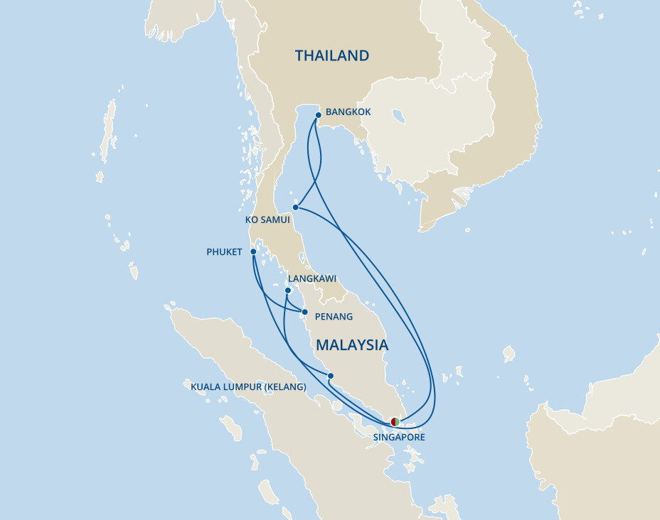 Malaysia’s dynamic capital is a melting pot of skyscrapers, Islamic architecture and British Colonial buildings offering a futuristic cityscape with an enduring nod to yesteryear. Home to some of Asia’s most opulent shopping malls, Kuala Lumpur’s skyline is dominated by the famous Petronas and Menara Kuala Lumpur Towers. Ships will dock in Port Klang.