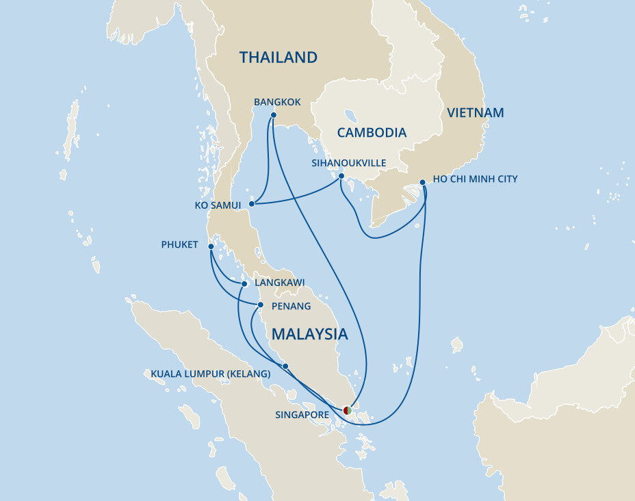 Malaysia’s dynamic capital is a melting pot of skyscrapers, Islamic architecture and British Colonial buildings offering a futuristic cityscape with an enduring nod to yesteryear. Home to some of Asia’s most opulent shopping malls, Kuala Lumpur’s skyline is dominated by the famous Petronas and Menara Kuala Lumpur Towers. Ships will dock in Port Klang.