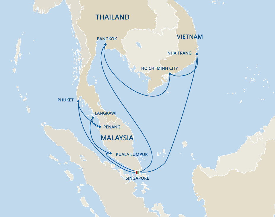 Malaysia’s dynamic capital is a melting pot of skyscrapers, Islamic architecture and British Colonial buildings offering a futuristic cityscape with an enduring nod to yesteryear. Home to some of Asia’s most opulent shopping malls, Kuala Lumpur’s skyline is dominated by the famous Petronas and Menara Kuala Lumpur Towers. Ships will dock in Port Klang.