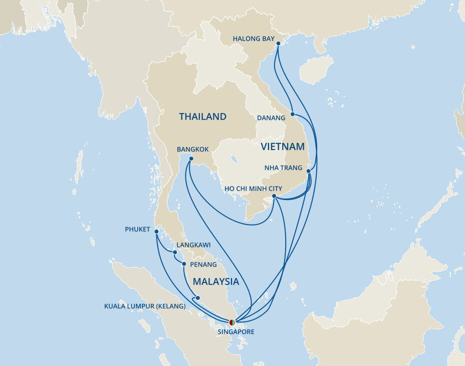 Malaysia’s dynamic capital is a melting pot of skyscrapers, Islamic architecture and British Colonial buildings offering a futuristic cityscape with an enduring nod to yesteryear. Home to some of Asia’s most opulent shopping malls, Kuala Lumpur’s skyline is dominated by the famous Petronas and Menara Kuala Lumpur Towers. Ships will dock in Port Klang.