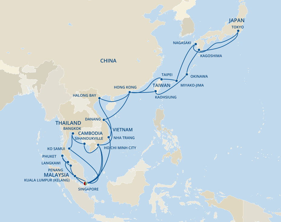 Malaysia’s dynamic capital is a melting pot of skyscrapers, Islamic architecture and British Colonial buildings offering a futuristic cityscape with an enduring nod to yesteryear. Home to some of Asia’s most opulent shopping malls, Kuala Lumpur’s skyline is dominated by the famous Petronas and Menara Kuala Lumpur Towers. Ships will dock in Port Klang.