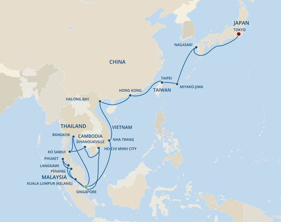 Malaysia’s dynamic capital is a melting pot of skyscrapers, Islamic architecture and British Colonial buildings offering a futuristic cityscape with an enduring nod to yesteryear. Home to some of Asia’s most opulent shopping malls, Kuala Lumpur’s skyline is dominated by the famous Petronas and Menara Kuala Lumpur Towers. Ships will dock in Port Klang.