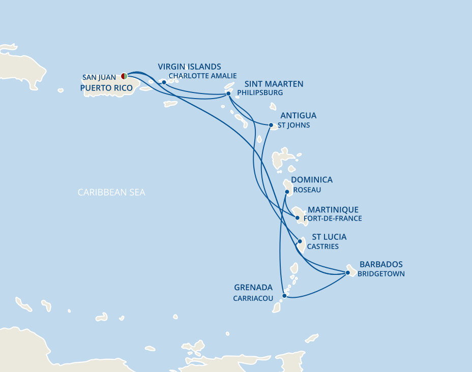 San Juan's picturesque cobblestone streets, plazas and chapels reflect its Spanish heritage. But the second oldest city in the Americas also boasts fine beaches, lush rainforests, verdant mountainsides, imposing forts and a lovely tropical climate. Ships will dock at this port.