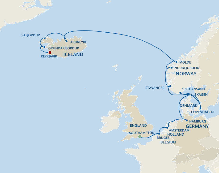 Iceland’s Capital of the North is the gateway to a thrilling land of roaring waterfalls, soaring volcanoes and glorious wildlife. Situated at the head of Eyjafjordur, Iceland's longest fjord and with a backdrop of dramatic snow-covered mountains, Akureyri is Iceland's second largest city. Ships will dock at the pier.