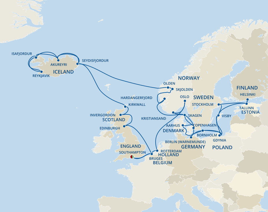 The iconic Little Mermaid statue sits serenely by the waterfront, while Tivoli Gardens, one of the world’s oldest amusement parks, offers charming rides and lush gardens in the heart of the city. Your ship will dock at the Port of Copenhagen, which is a 30 minute drive to Copenhagen Airport and a 15 minute drive into the city centre.