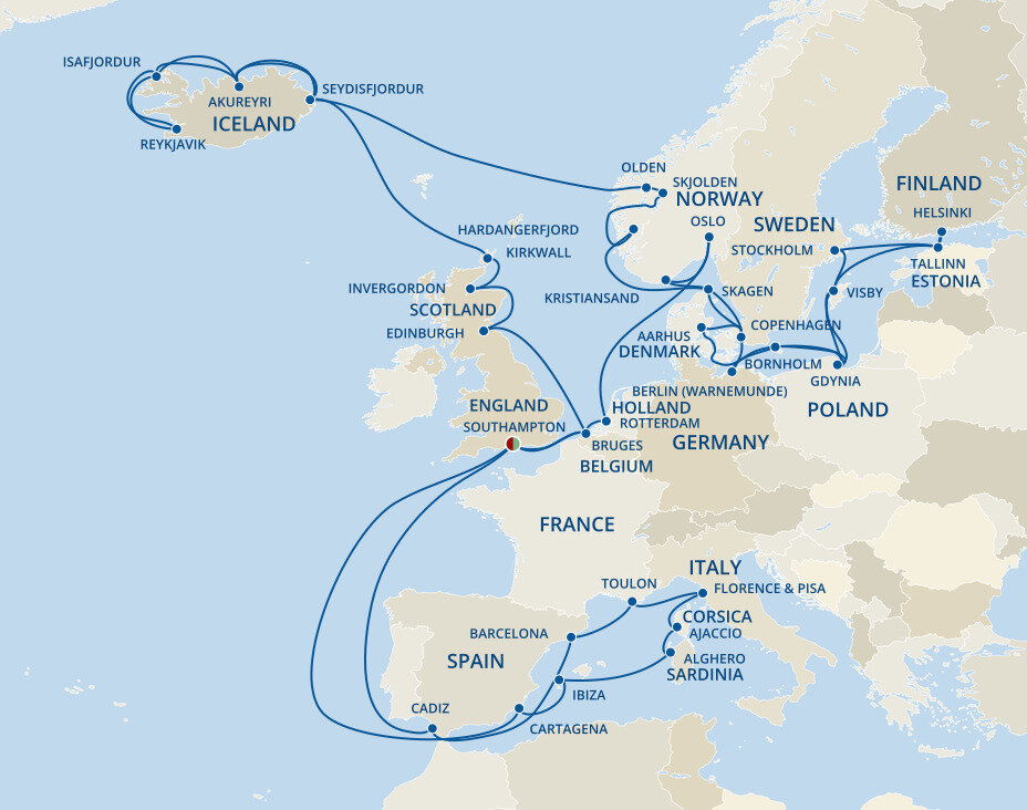 Your cruise is about to begin! It's time to make your way to Southampton, if you haven't already. To reach Southampton from London, you can take a train from London Waterloo to Southampton Central, with the journey taking around 1.5 hours - that's approximately 128 km's (80 miles). Alternatively if you're travelling by coach or have arranged a private transfer, please allow around 2 hours for the journey. Once in Southampton, the cruise terminals are within a short taxi ride from the station.