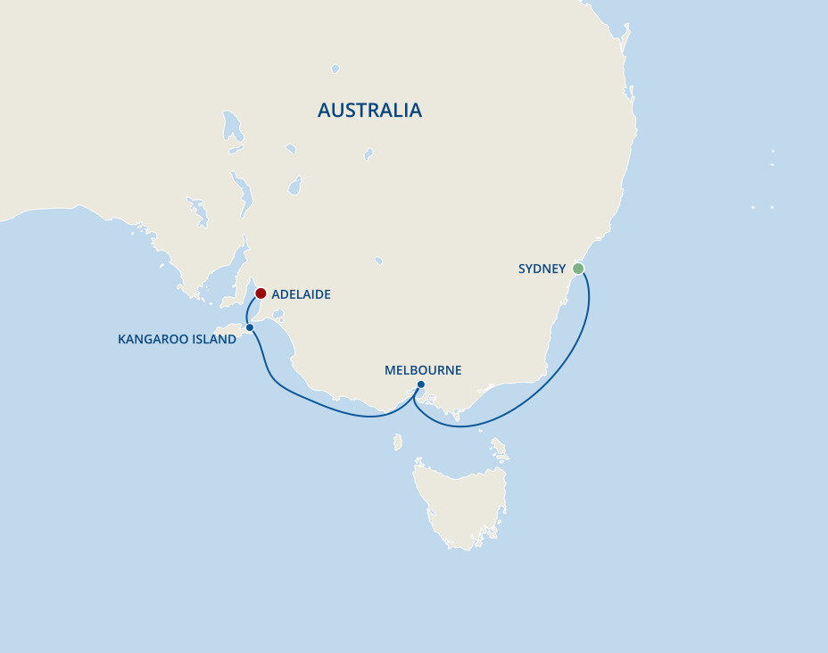 Kangaroo Island is home to dramatic coastal cliffs, lush eucalyptus forests, rolling green hills and gorgeous beaches. It is a wildlife sanctuary where you get the unique opportunity to see an amazing range of animals up-close in their local habitat. Ships will anchor offshore and tenders will be provided to the pier.