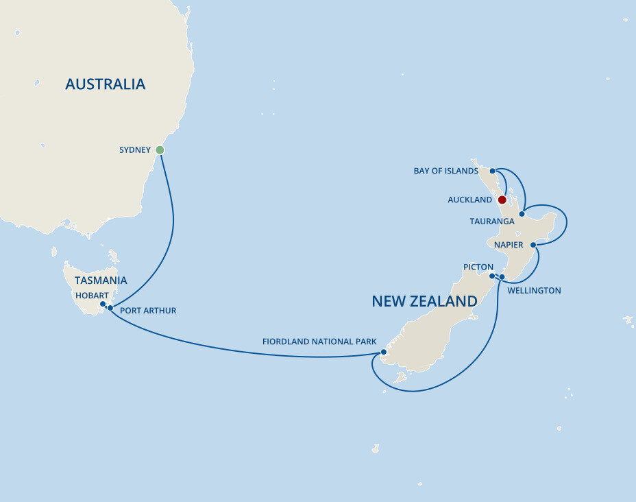 The Bay of Islands, a stunning archipelago encompassing 144 islands and including the boutique towns of Opua, Paihia, Russell and Kerikeri, is famed for its turquoise waters and rich Māori history. Take a boat tour to explore the iconic Hole in the Rock or spot dolphins. Visit Russell, a picturesque town with colonial history, or the Waitangi Treaty Grounds, where New Zealand’s founding document was signed. Your ship will anchor in the bay, just off Russell, and you'll tender ashore.