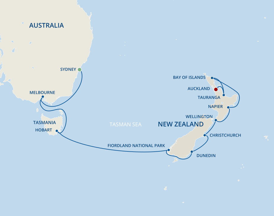 In downtown Auckland you can enjoy world-class dining, shopping, and sights. If you've a mind to explore, visit the island volcano of Rangitoto, or head to Waiheke, known as 'the island of wine' each are within a 40 minute ferry ride of your port.