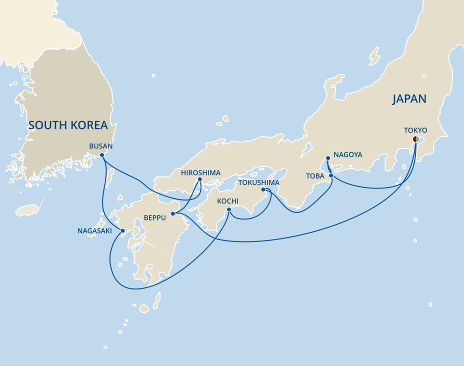Overlooking Beppu Bay to its east and dramatic mountain peaks to the west, Beppu is blanketed with misty turquoise waters and elegant Japanese foliage. Its main attraction is the 'Hells of Beppu,' a collection of 8 onsen, or hot springs, some of which feature geysers and colourful waters ranging from white to copper to sapphire. Ships will dock at the port of Beppu.