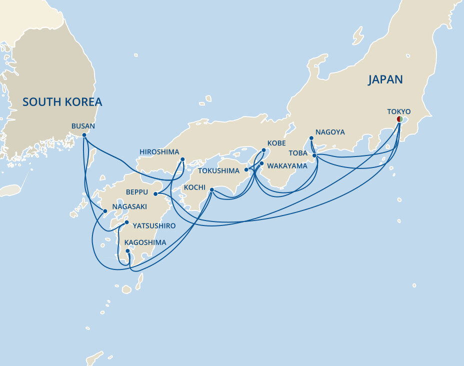 Overlooking Beppu Bay to its east and dramatic mountain peaks to the west, Beppu is blanketed with misty turquoise waters and elegant Japanese foliage. Its main attraction is the 'Hells of Beppu,' a collection of 8 onsen, or hot springs, some of which feature geysers and colourful waters ranging from white to copper to sapphire. Ships will dock at the port of Beppu.