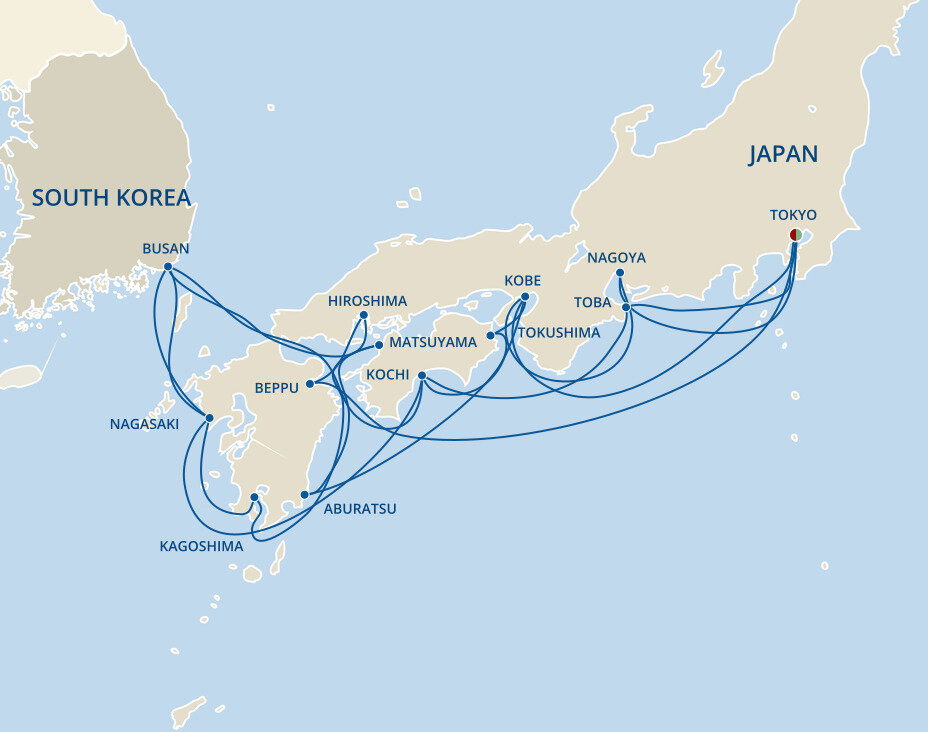 Overlooking Beppu Bay to its east and dramatic mountain peaks to the west, Beppu is blanketed with misty turquoise waters and elegant Japanese foliage. Its main attraction is the 'Hells of Beppu,' a collection of 8 onsen, or hot springs, some of which feature geysers and colourful waters ranging from white to copper to sapphire. Ships will dock at the port of Beppu.