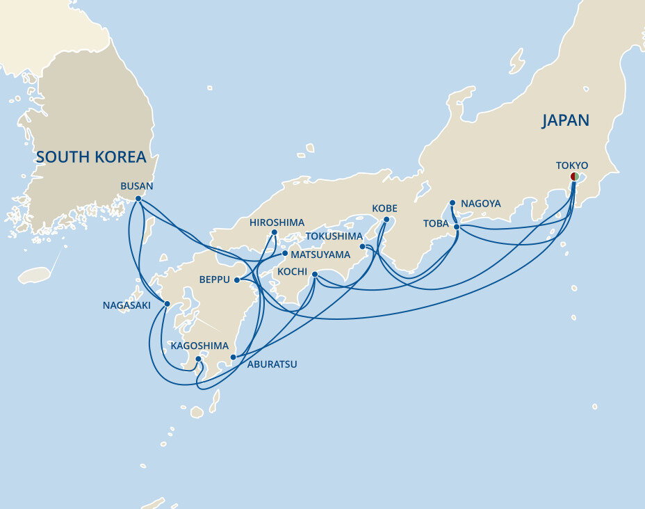 Overlooking Beppu Bay to its east and dramatic mountain peaks to the west, Beppu is blanketed with misty turquoise waters and elegant Japanese foliage. Its main attraction is the 'Hells of Beppu,' a collection of 8 onsen, or hot springs, some of which feature geysers and colourful waters ranging from white to copper to sapphire. Ships will dock at the port of Beppu.