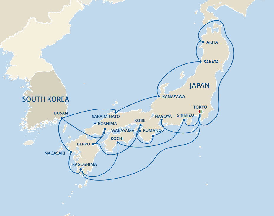 Overlooking Beppu Bay to its east and dramatic mountain peaks to the west, Beppu is blanketed with misty turquoise waters and elegant Japanese foliage. Its main attraction is the 'Hells of Beppu,' a collection of 8 onsen, or hot springs, some of which feature geysers and colourful waters ranging from white to copper to sapphire. Ships will dock at the port of Beppu.