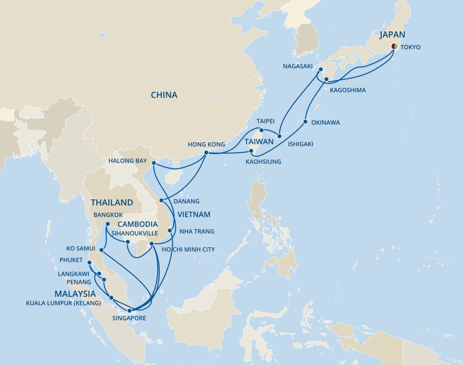 Malaysia’s dynamic capital is a melting pot of skyscrapers, Islamic architecture and British Colonial buildings offering a futuristic cityscape with an enduring nod to yesteryear. Home to some of Asia’s most opulent shopping malls, Kuala Lumpur’s skyline is dominated by the famous Petronas and Menara Kuala Lumpur Towers. Ships will dock in Port Klang.