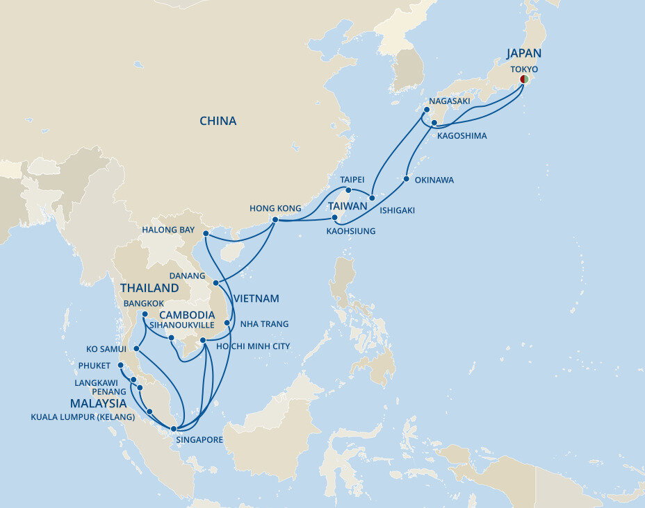 Malaysia’s dynamic capital is a melting pot of skyscrapers, Islamic architecture and British Colonial buildings offering a futuristic cityscape with an enduring nod to yesteryear. Home to some of Asia’s most opulent shopping malls, Kuala Lumpur’s skyline is dominated by the famous Petronas and Menara Kuala Lumpur Towers. Ships will dock in Port Klang.
