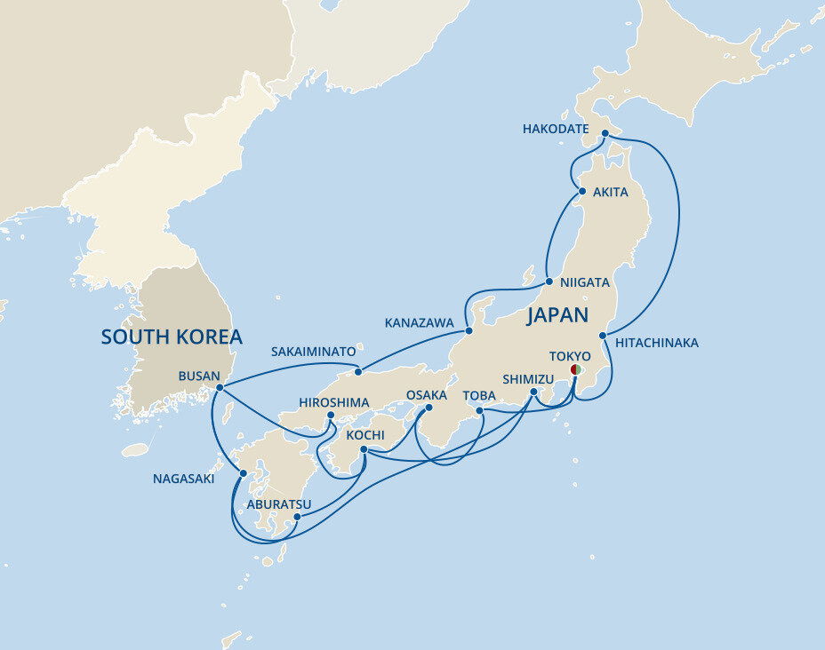 Akita is the capital of Akita Prefecture, which is renowned for Akita dogs, high-quality rice and sake, and lively folk festivals. Among the area's main attractions are its natural beauty of mountains and the sea, hot springs and the town of Kakunodate, which preserves one of Japan's most interesting samurai districts. Ships will dock at the Akita Port Cruise Terminal.