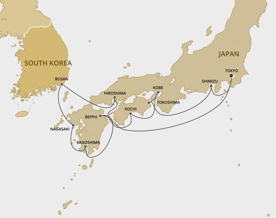 Overlooking Beppu Bay to its east and dramatic mountain peaks to the west, Beppu is blanketed with misty turquoise waters and elegant Japanese foliage. Its main attraction is the 'Hells of Beppu,' a collection of 8 onsen, or hot springs, some of which feature geysers and colourful waters ranging from white to copper to sapphire. Ships will dock at the port of Beppu.