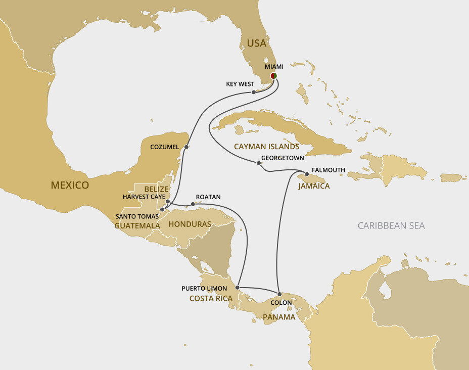 Featuring an enchanting range of environments such as tropical rainforests, marshes and coral reefs, Harvest Caye offers both relaxation and adventure amid lush landscapes. This pristine mangrove-covered 75-acre private island is a gem in the crown of Belize’s natural resources. Ships will dock at this port.