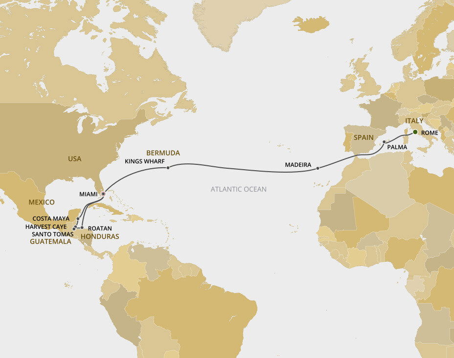 Featuring an enchanting range of environments such as tropical rainforests, marshes and coral reefs, Harvest Caye offers both relaxation and adventure amid lush landscapes. This pristine mangrove-covered 75-acre private island is a gem in the crown of Belize’s natural resources. Ships will dock at this port.