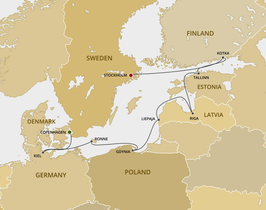 Defined by the Baltic Sea and surrounding archipelago, Kotka is a picturesque town with a rich maritime tradition. This cultural city has plenty to offer including parks, churches, sculptural displays, and museums. Ships will dock at the Port of HaminaKotka.
