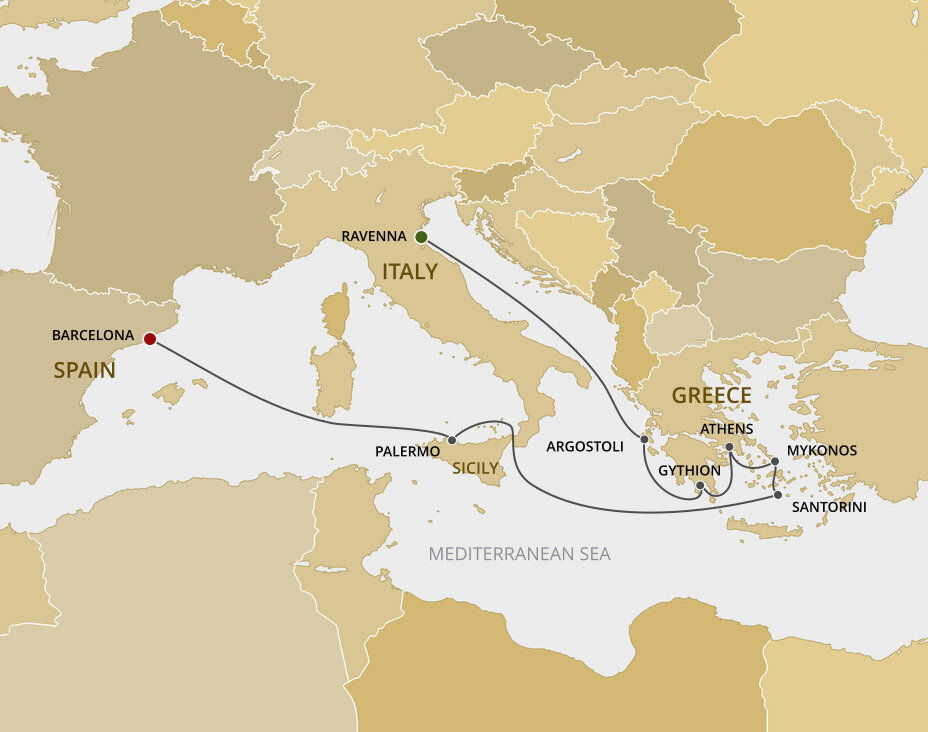 Your cruise finishes today in Barcelona, a captivating city on Spain's northeastern coast. If you're extending your stay in the city, start with a visit to La Sagrada Família, Antoni Gaudí's masterpiece, then wander through the narrow, historic streets of the Gothic Quarter.
