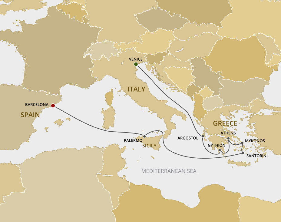 Your cruise finishes today in Barcelona, a captivating city on Spain's northeastern coast. If you're extending your stay in the city, start with a visit to La Sagrada Família, Antoni Gaudí's masterpiece, then wander through the narrow, historic streets of the Gothic Quarter.