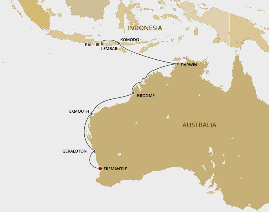 A scenic coastal town with clear turquoise waters, Exmouth was once a US and Australian naval surveillance town. Now a small resort town, it is known as the gateway to Ningaloo Reef. Ships will anchor offshore and tenders are provided to shore.