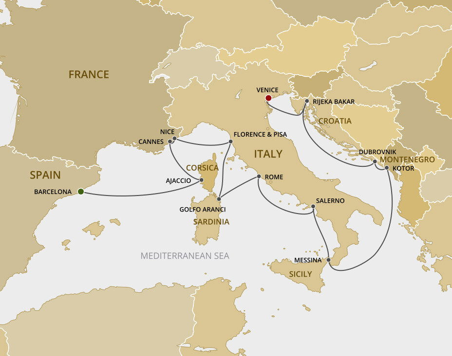 The lively seaport of Salerno is a thriving modern metropolis with ancient origins. Its elegant lungomare, a shoreside promenade, offers far-reaching views of the sea and the mountains beyond. The city boasts an ideal location with both the ruins of Roman cities and the stunning Amalfi Coast in easy reach. Ships will dock at this port.