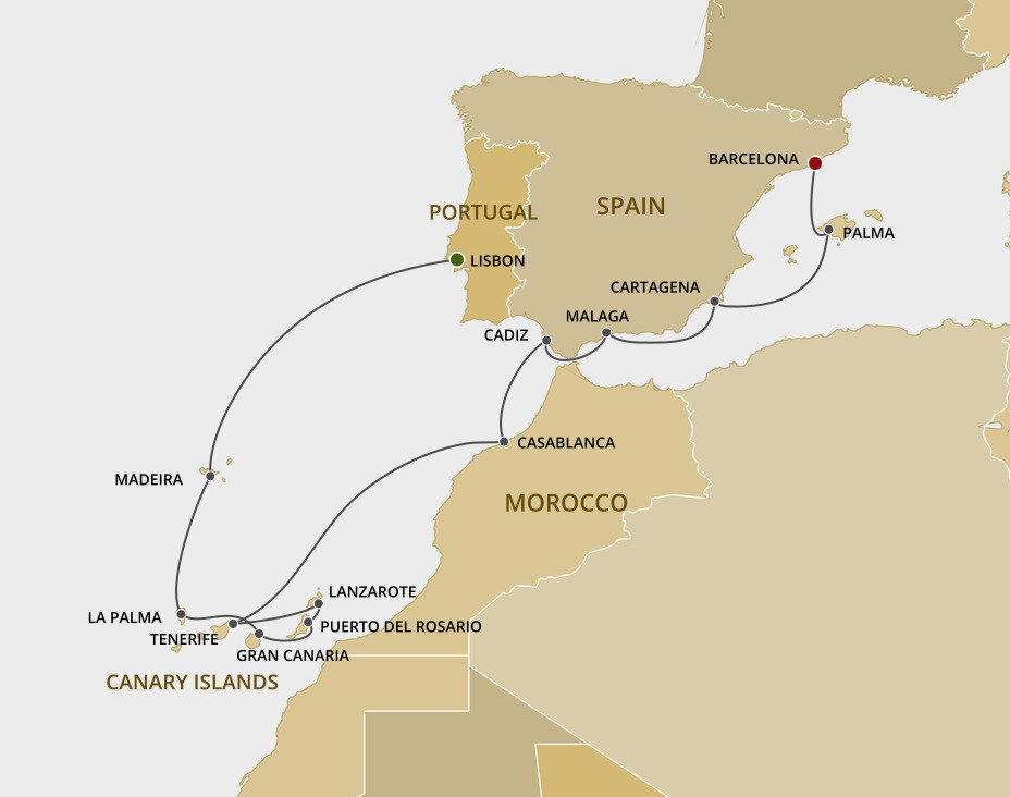 Málaga is the lively capital of the Costa del Sol, famed for its beaches and mild climate. It is a city of narrow streets, whitewashed houses, churches and sunny plazas. Málaga also serves as a popular starting point for excursions to splendid Granada and the famed Alhambra. Ships will dock at the Málaga cruise terminal.