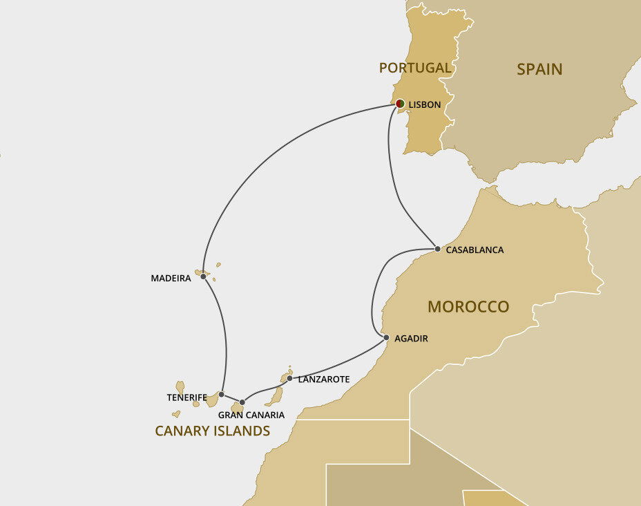 Tucked near the foot of the Atlas Mountains and surrounded by the rich plains of the Souss Valley, Agadir is a sunny cosmopolitan city with modern architecture, wide, tree-lined avenues and magnificent sandy beaches. Ships will dock at this port.