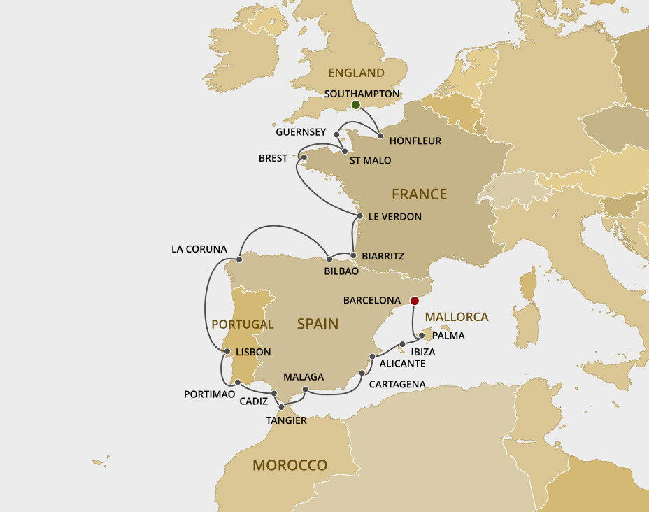 Málaga is the lively capital of the Costa del Sol, famed for its beaches and mild climate. It is a city of narrow streets, whitewashed houses, churches and sunny plazas. Málaga also serves as a popular starting point for excursions to splendid Granada and the famed Alhambra. Ships will dock at the Málaga cruise terminal.