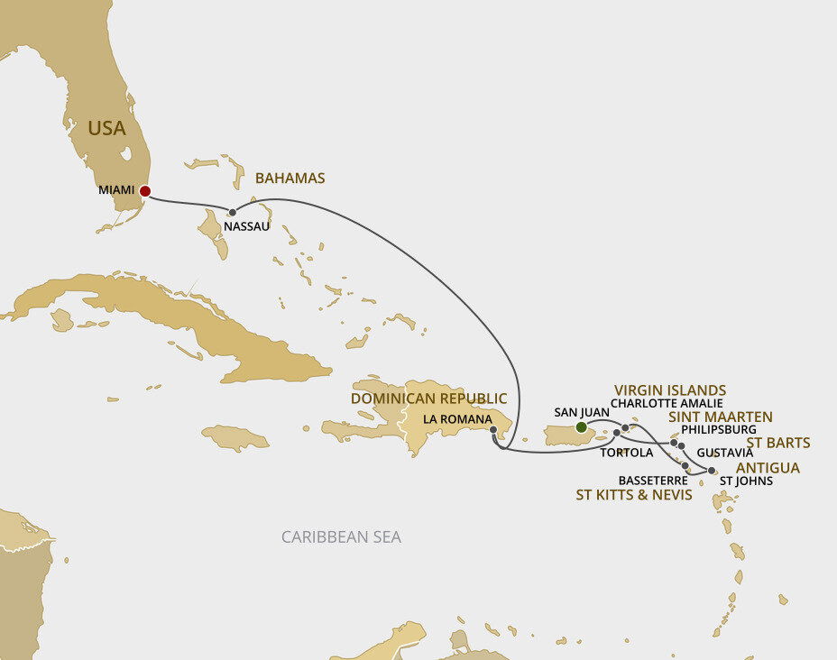 Cherry red roofs, yacht-sprinkled bays and a sophisticated French flavour all add to the gorgeous Caribbean allure of Gustavia. St. Barthelemy's capital rolls around a horseshoe-shaped harbour, where gleaming yachts hover and fancy boutiques, bars and restaurants fizz with life. Ships will anchor offshore and tenders will be provided to the shore.