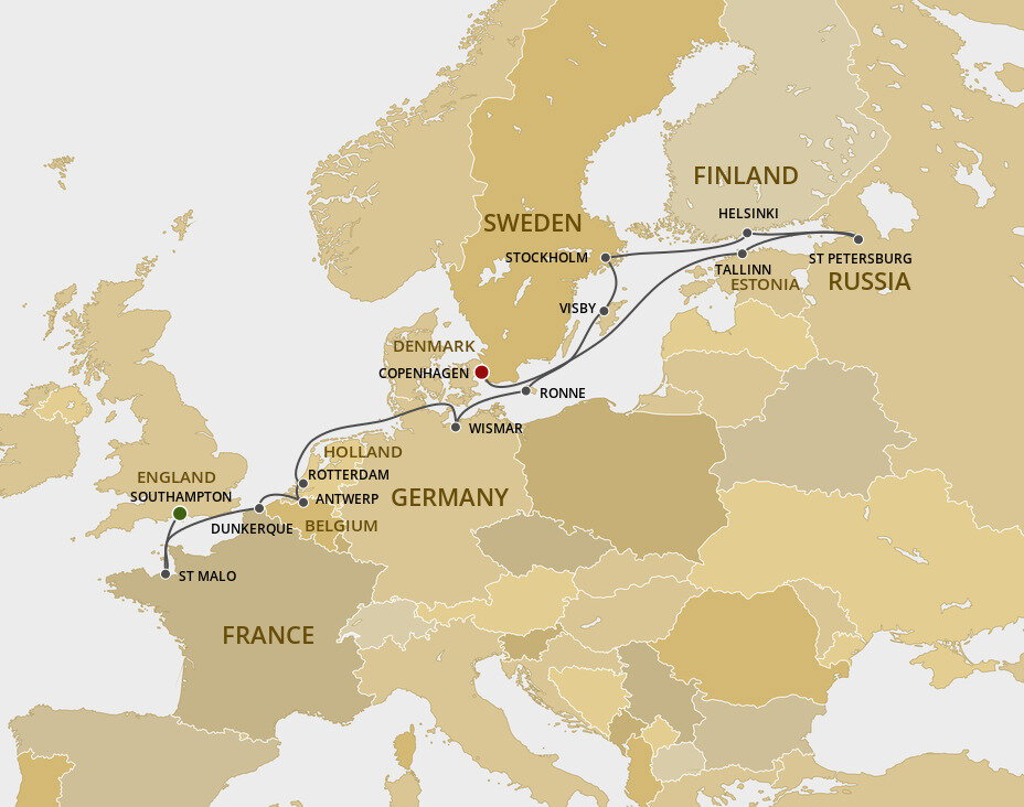 Russia's 'Window on the West,' St. Petersburg remains one of the world's most beautiful metropolises. Founded by Russian Tsar, Peter the Great, the city is perched on the banks of the Neva and is crisscrossed by canals. Larger ships will dock at Marine Facade, while smaller ships are able to dock at English Embankment.
