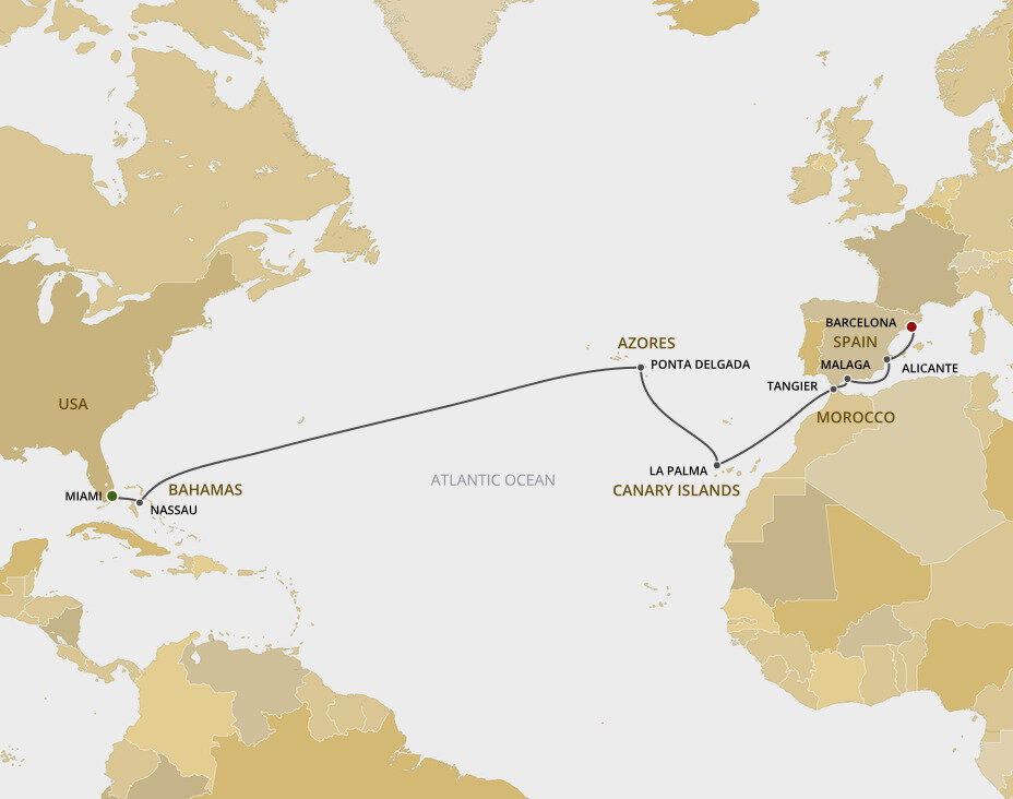 Your cruise finishes today in Barcelona, a captivating city on Spain's northeastern coast. If you're extending your stay in the city, start with a visit to La Sagrada Família, Antoni Gaudí's masterpiece, then wander through the narrow, historic streets of the Gothic Quarter.
