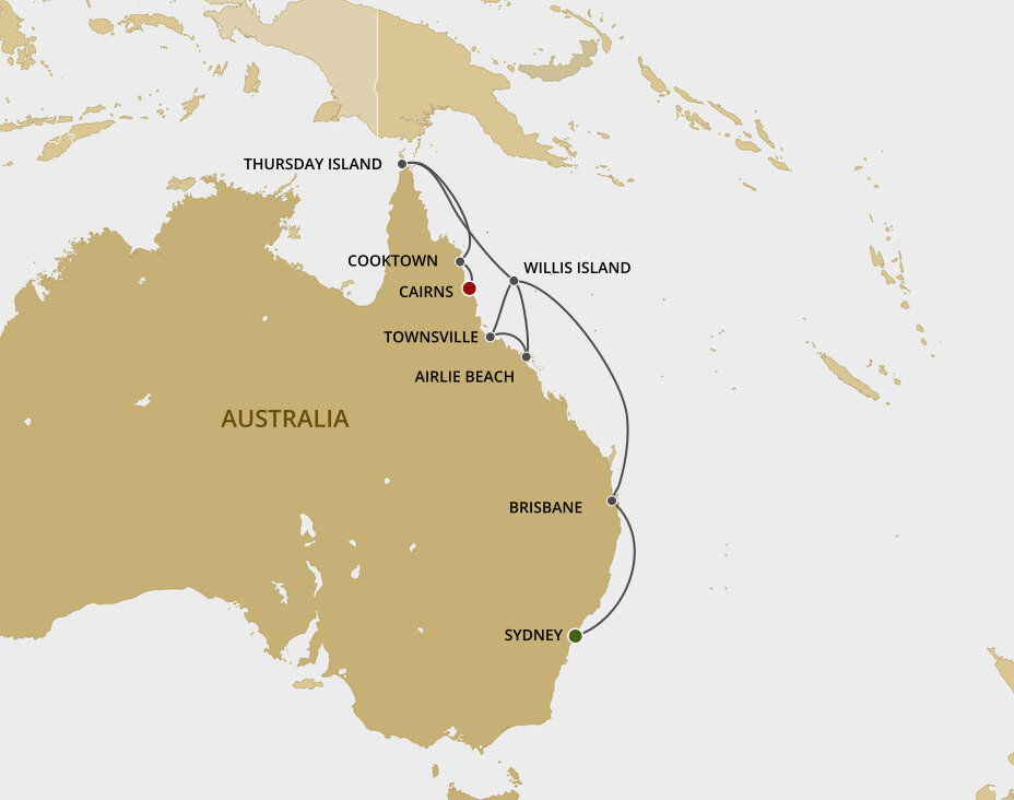 A quaint frontier town, scenically located on Cape York Peninsula in Far North Queensland, Cooktown is the site of Australia’s first European settlement. It is a beautiful, unspoilt, small historic coastal town surrounded by stunning countryside. Ships will anchor offshore and tenders will be provided to the port.