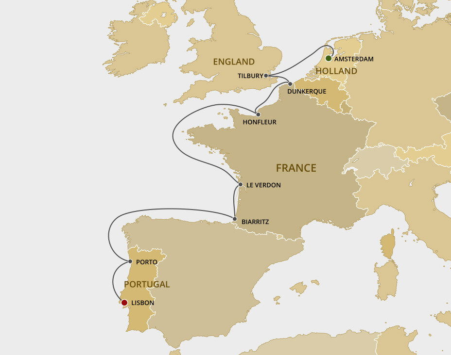 Biarritz, an elegant seaside town on southwestern France’s Basque coast, has been a popular resort since European royalty began visiting in the 1800s. The coastline is dotted with rocks shaped by the ocean, buildings and villas in eclectic architectural styles and long, sandy beaches. Ships will anchor offshore in Saint Jean de Luz.