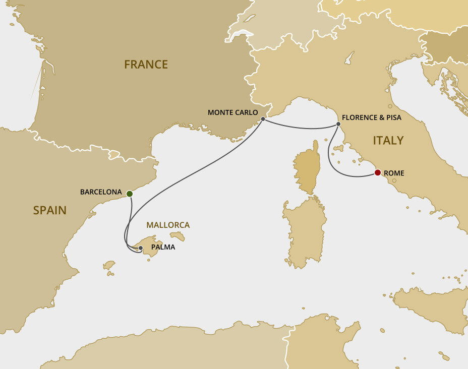 The ancient capital of the Western World and the centre of Christianity for nearly 2,000 years, Rome provides an inexhaustible feast of historical and cultural landmarks to explore. Visit the ruins of the Forum and the Colosseum, view the splendours of the Sistine Chapel, throw a coin into the Trevi Fountain or climb the Spanish Steps, once the heart of Rome's Bohemian Quarter.