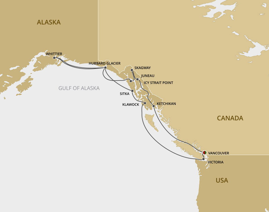 Venture 'where the north wind doesn’t blow' and discover Icy Strait Point. This uniquely Alaskan port is one of the few places in the world where wildlife outnumbers the human population. Pine trees as tall as skyscrapers, humpback whales, eagles, wild salmon, black bears and more form the harmonious tapestry of life in this Alaskan hinterland. Ships will dock at this port.