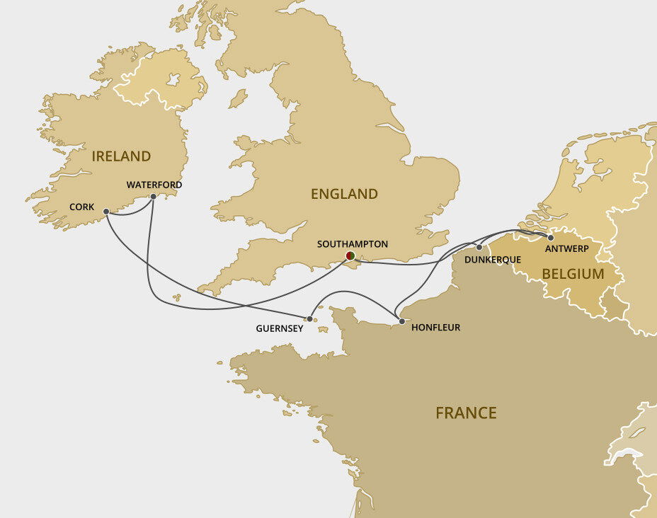Nestled by the banks of the River Suir, Waterford is Ireland’s oldest city, dating back to Viking times. Its impressive medieval city walls, cobbled, winding streets and colourful waterfront lend the town a charming feel. Small ships will dock at Belview Port, while large ships will anchor offshore at Dunmore East. Dunmore East is a 30 minute drive from Waterford.