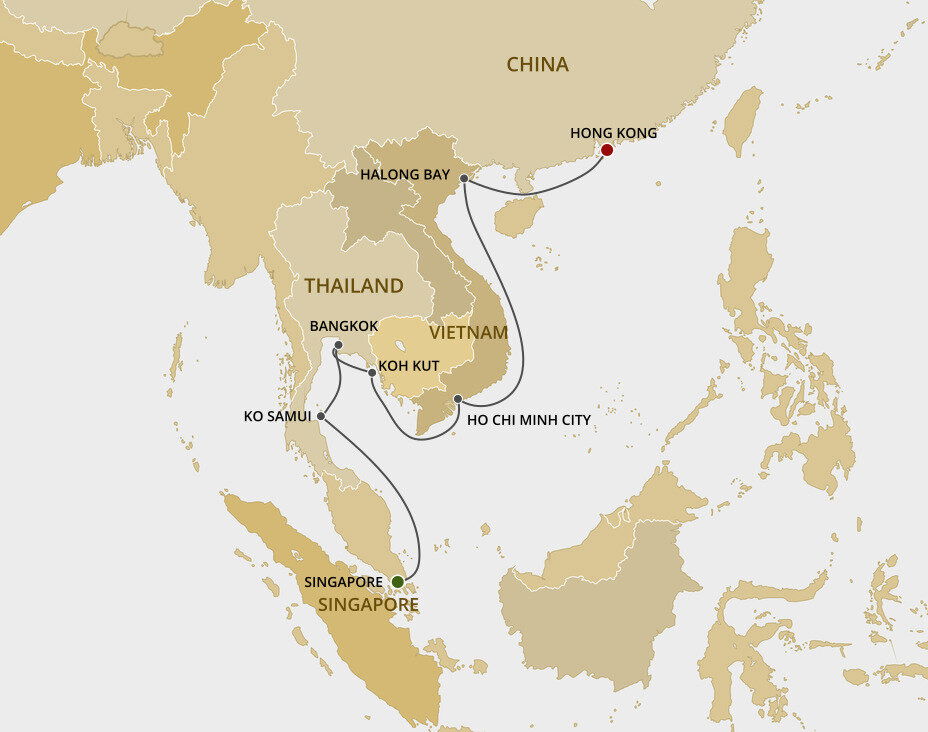 Ko Samui is an idyllic, forested island with pristine beaches, but venture inland and see majestic cascading waterfalls or a plantation where monkeys harvest coconuts. Aside from its blissful beaches and lush interior, you'll also discover charming fishing villages and impressive golden Buddhist temples. Ships will anchor off Nathon and tenders guests ashore.