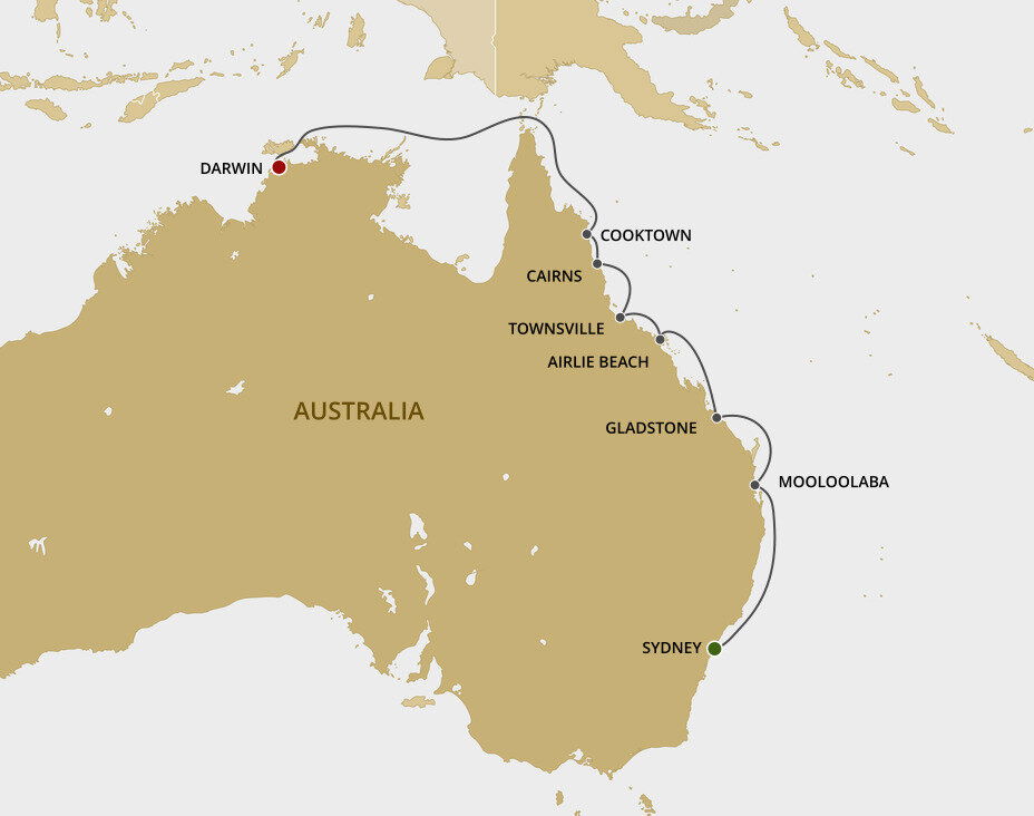 A quaint frontier town, scenically located on Cape York Peninsula in Far North Queensland, Cooktown is the site of Australia’s first European settlement. It is a beautiful, unspoilt, small historic coastal town surrounded by stunning countryside. Ships will anchor offshore and tenders will be provided to the port.