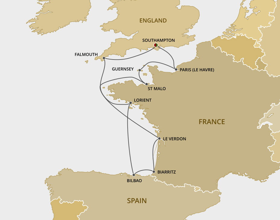 Biarritz, an elegant seaside town on southwestern France’s Basque coast, has been a popular resort since European royalty began visiting in the 1800s. The coastline is dotted with rocks shaped by the ocean, buildings and villas in eclectic architectural styles and long, sandy beaches. Ships will anchor offshore in Saint Jean de Luz.
