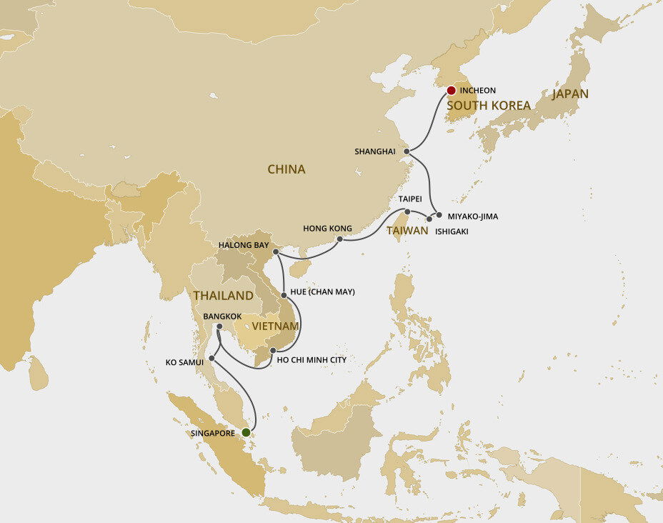 Incheon serves as the port of call and gateway to the city of Seoul, the capital of South Korea, and is just over 40km/24mi away (just over 30 minutes away by car).