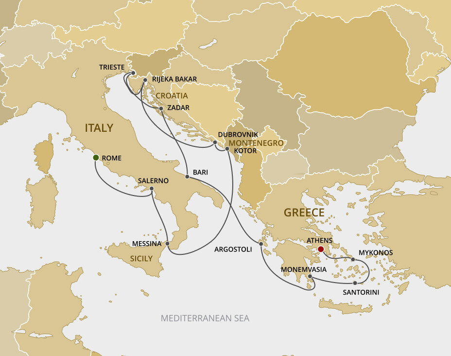 Perched on the Adriatic Sea, the city of Bari has long served as an important port city for both ancient and modern Italy. The city's Old Town beckons visitors to explore with its medieval churches, pedestrian-friendly plazas, and its labyrinth of crooked streets and passageways. Ships will dock at the Port of Bari.