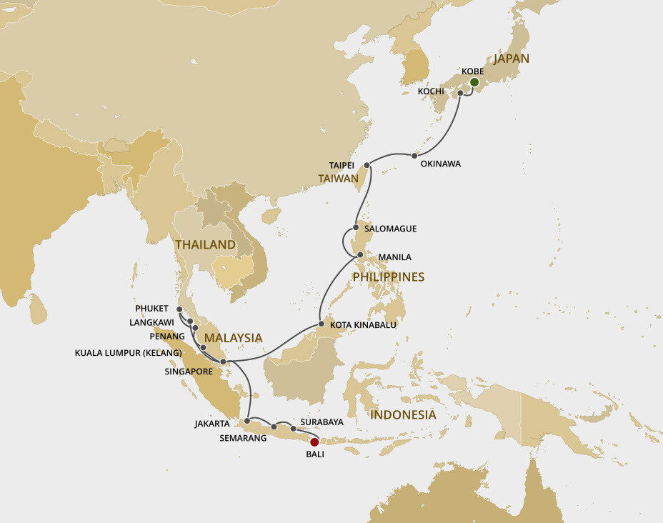 Benoa is located on the southern tip of Bali and is the key gateway for travellers exploring this Indonesian island. The port is approximately 12 kms (7.5 miles) from the bustling city of Denpasar - a journey of around 30 minutes. You'll dock directly at the terminal, allowing easy access to transport options.