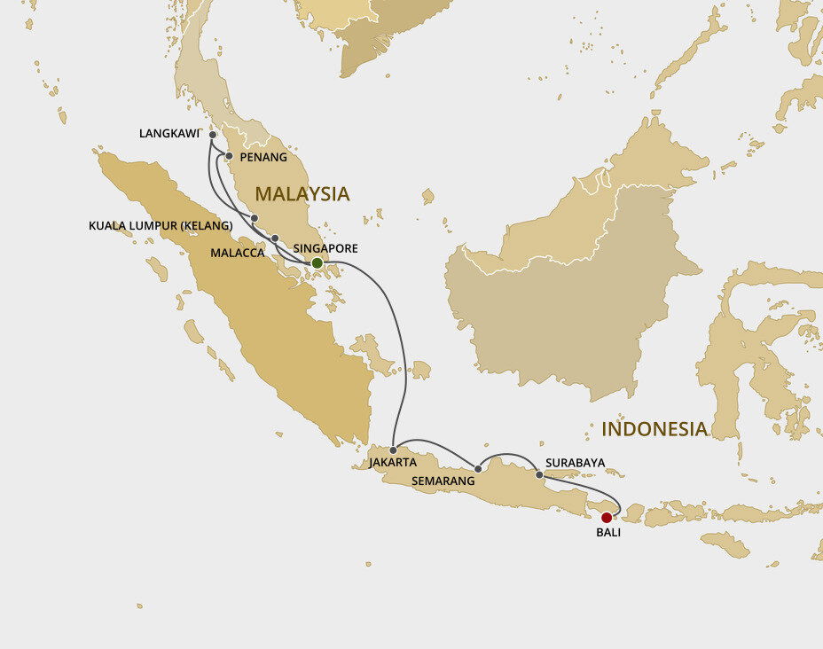 Malaysia’s dynamic capital is a melting pot of skyscrapers, Islamic architecture and British Colonial buildings offering a futuristic cityscape with an enduring nod to yesteryear. Home to some of Asia’s most opulent shopping malls, Kuala Lumpur’s skyline is dominated by the famous Petronas and Menara Kuala Lumpur Towers. Ships will dock in Port Klang.