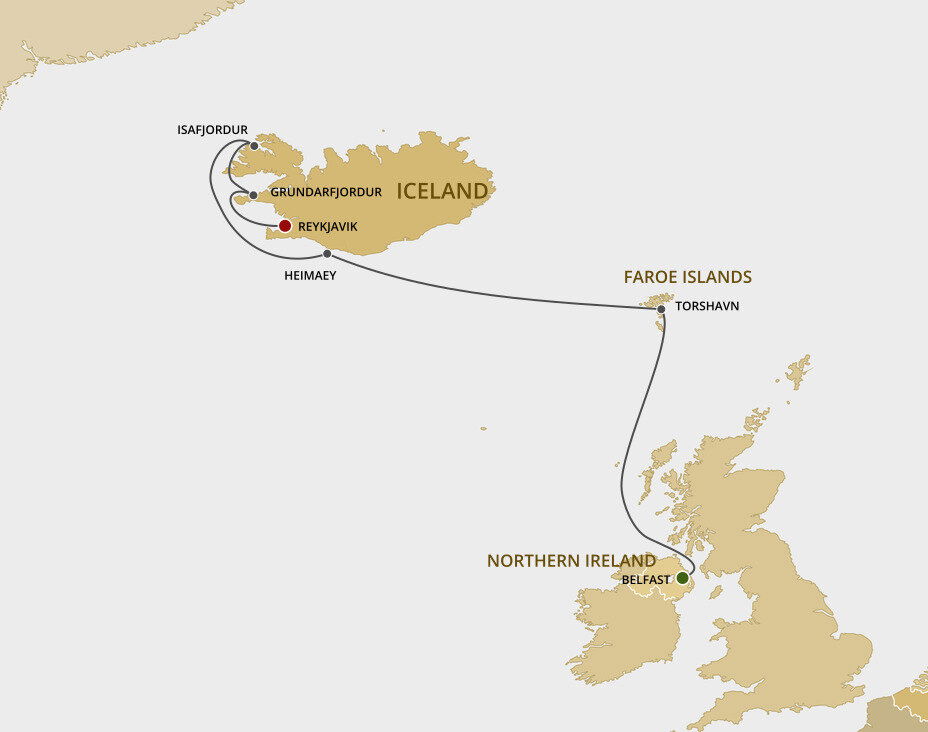Grundarfjordur is a picturesque town situated on the fjord of Beidafjordur on the Snaefellsnes Peninsula. This charming fishing village is located right next to Kirkjufell mountain, the most photographed mountain in Iceland. Ships will dock at the Port of Grundarfjordur.