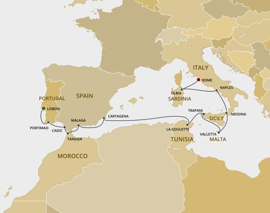 Málaga is the lively capital of the Costa del Sol, famed for its beaches and mild climate. It is a city of narrow streets, whitewashed houses, churches and sunny plazas. Málaga also serves as a popular starting point for excursions to splendid Granada and the famed Alhambra. Ships will dock at the Málaga cruise terminal.